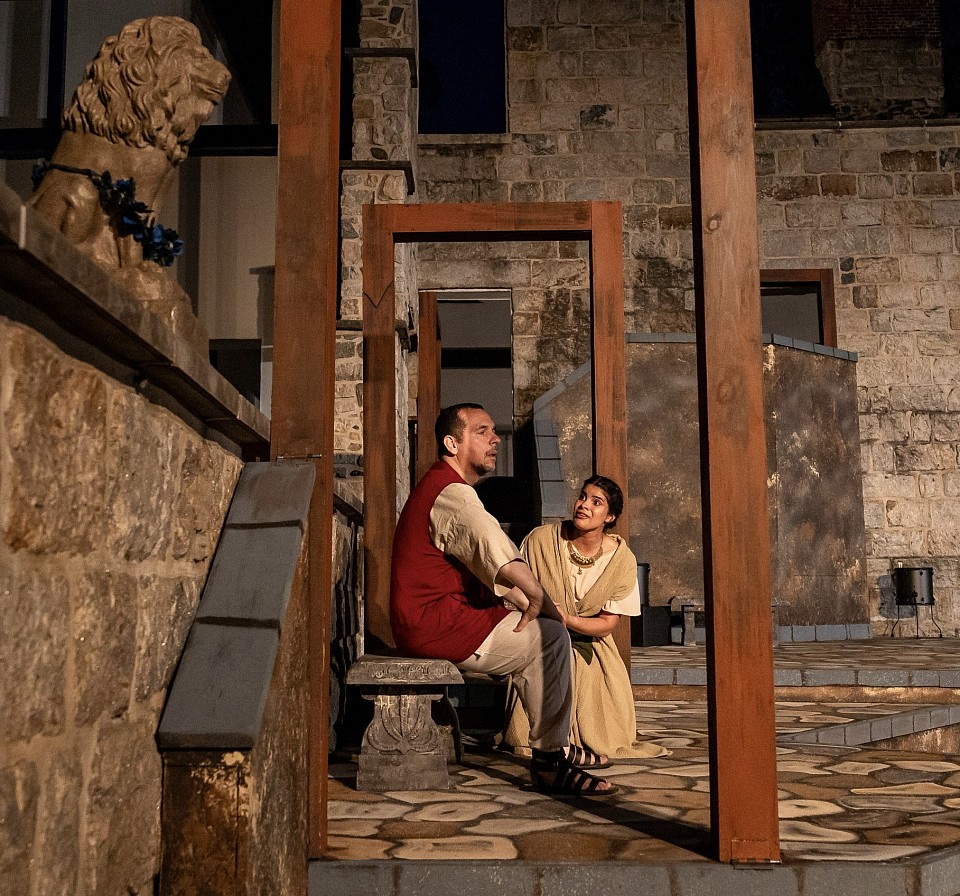 I portrayed Portia in Julius Caesar, directed by Marcus Kyd for Chesapeake Shakespeare Company, staged outdoors at the stunning Patapsco Female Institute Ruins in Ellicott City, MD. Set among the historic stone walls and open sky, the production used its environment to echo the play’s themes of political unrest and personal conflict. My performance as Portia was noted by BroadwayWorld Baltimore for its emotional depth and physical intensity, described as “emotionally charged” and “heart-torn,” with critics highlighting how I expressed Portia’s pain and fear through voice, movement, and presence. You can read the reviews here and here.